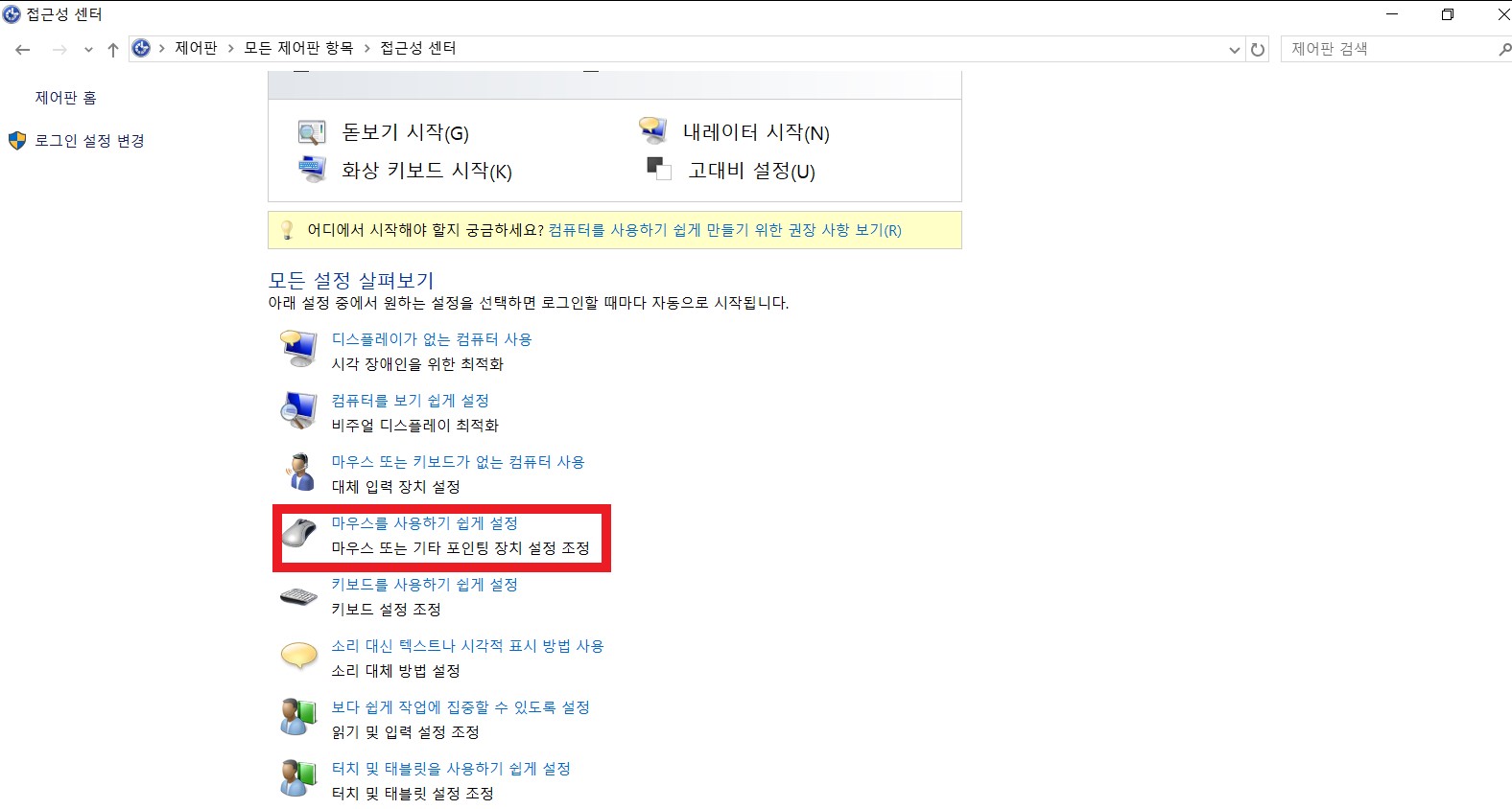 3. 마우스를 사용하기 쉽게 설정 클릭