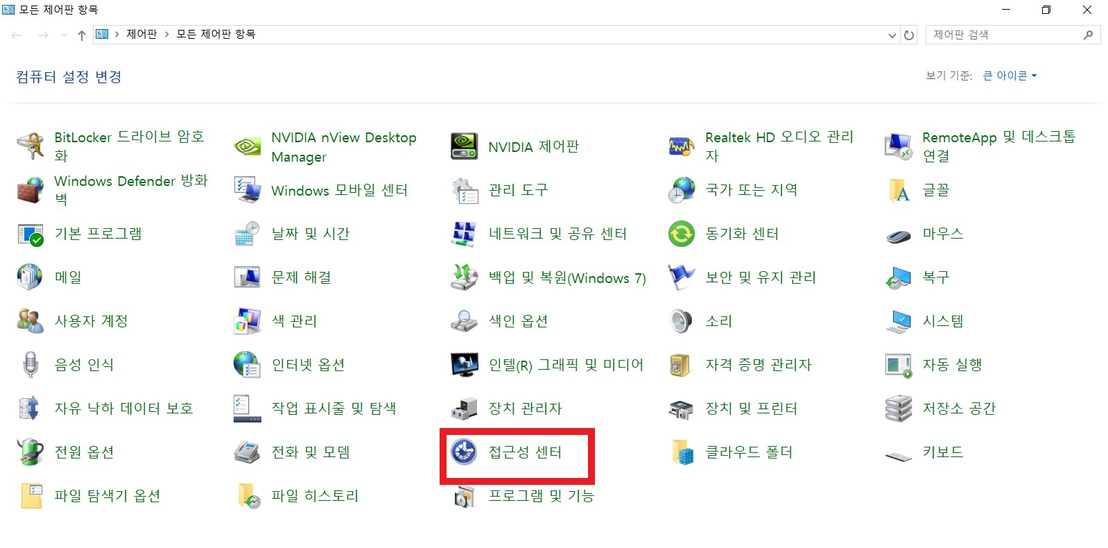 2. 접근성 센터를 클릭한다.