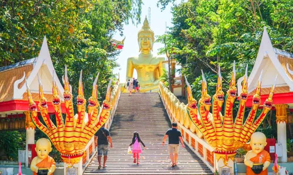 ‘빅 부다 사원(왓프라야 템플 Wat Phra Yai temple )’은 파타야에서 가장 큰 부처상이 있는 곳입니다. 높이 12m의 거대한 부처상이 자리 잡고 있는데요. 저 멀리서부터 눈에 띄는 황금 불상을 볼 수 있습니다. 지역 주민들의 건강과 어부들의 안전을 위해 건축되었죠.