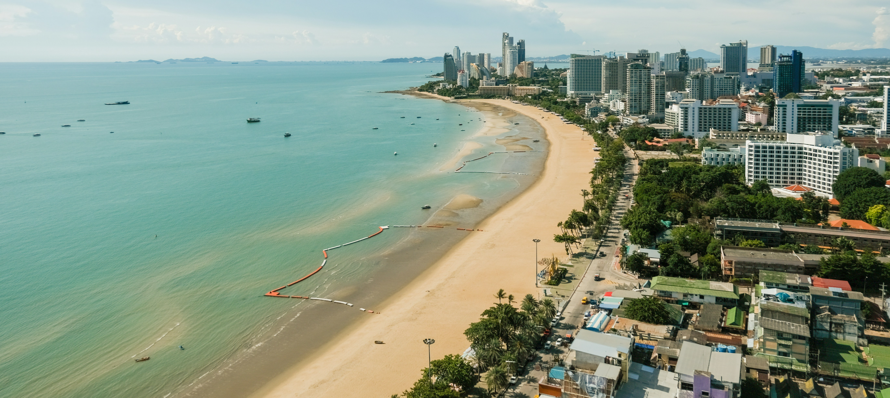 파타야의 해변은 넓은 백사장으로 유명합니다. 해안을 따라 산책을 즐기며 신선한 공기와 푸른 바다의 풍경을 감상할 수 있습니다. 해안을 따라 길게 뻗어있는 산책로는 아침 일찍 출발하여 일출을 보기에도 좋습니다.
