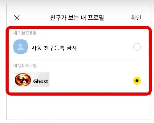 그리고 이런 것 자체도 번거롭고 귀찮다 하시는 분은 마지막 방법으로 멀티 프로필을 만들어서 사용하시면 됩니다. 전체 공개 프로필에는 아무런 정보도 개시하지 말고 나의 닉네임만을 만들어서 상대가 친구등록에 확인만 할 수 있도록 해두고 친구들만 볼 수 있는 내 실제 프로필은 따로 하나 더 만들어 두는 방법입니다.