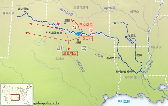 이런 거대한 미시시피강의 큰 지류 중 하나인 레드강이 바로 제임스 더튼 일행과 이민자들 마차 행렬 앞에 웅장한 장벽처럼 막아서는 장면이 1883 3화에 나오게 된것입니다. 레드강이 미시시피강의 지류라곤 하지만 동서로 길게 뻗은 레드강의 길이는 2,189km이며 강 유역에 있는 붉은 진흙색의 농경지 때문에 지금의 강 이름을 얻었다고 합니다. 두 개의 지류는 텍사스 펀핸들(Texas Panhandle)에서 발원하고 텍사스주와 오클라호마주 그리고 아칸소주 경계를 따라 동쪽으로 흐르며 루이지애나주 인근 남쪽으로 꺾어 아차팔라야강와 미시시피강으로 흘러 들어가게 됩니다.