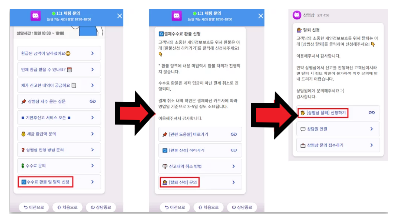 해당 홈페이지 혹은 어플에서 문의하기를 누르신 후 ‘수수료 환불 및 탈퇴 신청’을 클릭하여 탈퇴 신청을 문의하시면 됩니다.