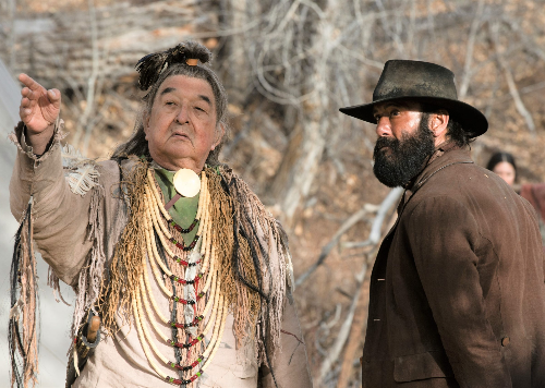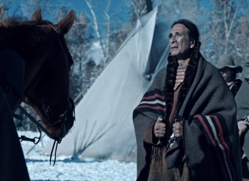 여기에서 유심히 볼 인물은 이 무리중 붉은 구슬 목걸이를 하고 있는 젊은 인디언인데 프리퀄 작품인 1923에서 테오나 레인워터 (Teonna Rainwater)의 아버지인 런히즈홀스(Run His Hores)의 붉은 구슬 목걸이와 매우 비슷하다는걸 알수 있습니다. 인디언들은 자신을 드러내거나 기념 할 것들을 표시하기 위해 장식을 이용하는 경우가 많은데 몬태나 수족 전사로써 부족을 위협하던 적의 죽인 숫자를 나타내기 위해 붉은 구슬을 했을수도 있습니다. 세월의 흐름에 따라 그 수는 증가했을테니 붉은 구슬의 숫자와 크기가 달라진 것일지도 모르겠습니다. 왜냐하면 런히즈 홀스가 피터를 붙잡아가던 인디언 학교 신부를 죽이고 그 심장을 먹은것만 봐도 그는 수많은 적을 죽인 역전의 전사라는걸 의심할 여지가 없기 때문입니다.