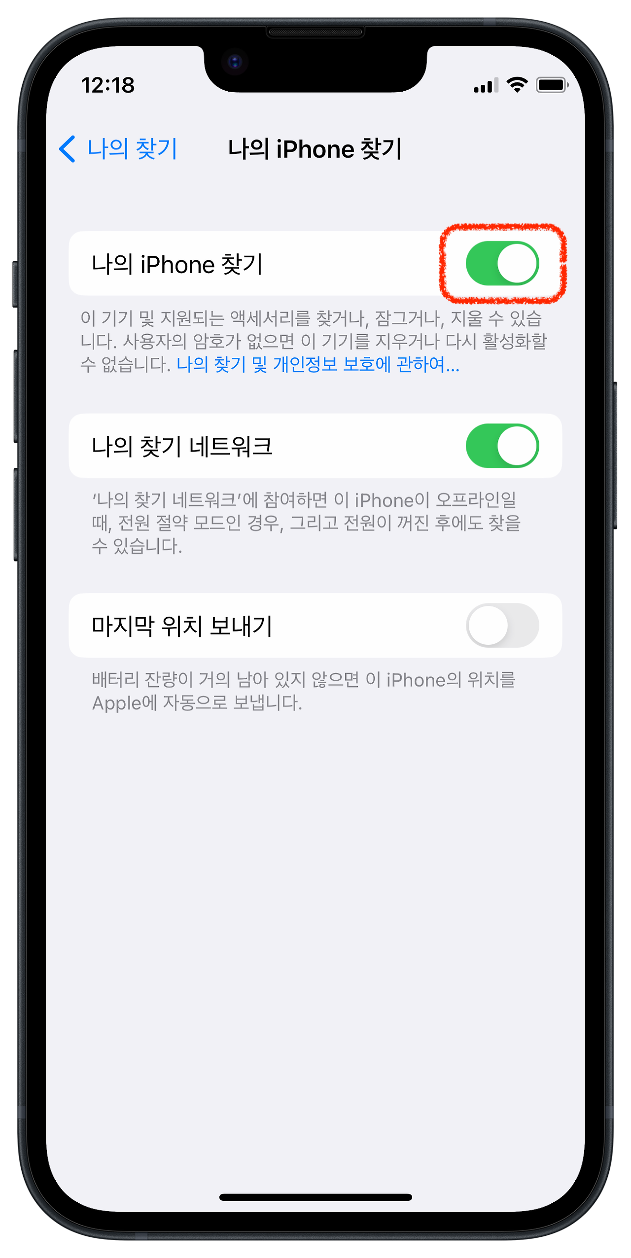 3. 서비스센터 방문 전 나의 iPhone 찾기 기능을 꺼줍니다.