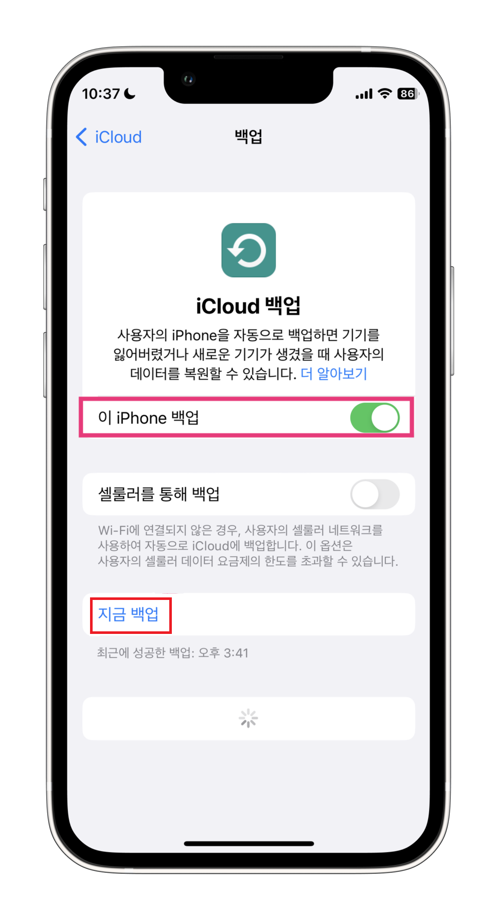 아이폰 백업하는 방법은 설정 > 내 이름 > iCloud 선택 > 목록하단에 iCloud 백업 선택 > iCloud 기능을 켜주고 바로 아래에 지금 백업을 눌러줍니다. 그러면 백업이 시작됩니다. 데이터양에 따라 다소 시간이 걸릴 수 있으니 마음의 여유를 가지고 기다리시면 됩니다.