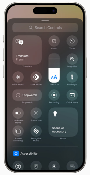 그리고 잠금 화면에서 고정돼있던 라이트 카메라 기능을 다른 액션 버튼으로 바꿀 수도 있게 변화되었습니다. 그리고 동작 버튼에 제어기가 추가되었습니다.