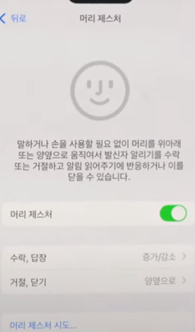에어팟에 머리 제스처라는 기능이 생겨서 전화가 왔을 때 머리를 끄덕이거나 가로저으면 전화를 받거나 끊는 기능이 발동합니다. 일종의 핸즈프리 기능을 담았다고 보면 될듯합니다.