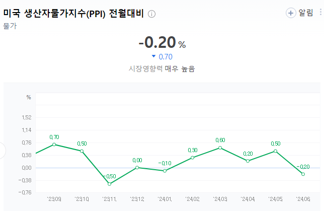 - 소비자물가 CPI의 선행지표인 미국 5월 생산자물가지수인 PPI가 예상을 밑돌았습니다.
