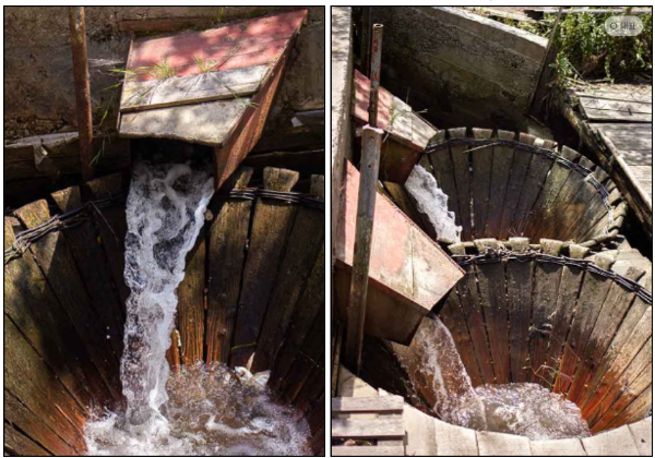 원추형으로 나무판으로 만들어진 웅덩이로 흐르는 빠른 물은 옷을 굴려 먼지를 제거하는 강력한 소용돌이를 만듭니다. 상단에 설치된 나무 수로관은 원추형 나무통으로 흐르는 물의 양을 조절해 줍니다. 그리고 원추형 나무통과 상단의 나무 수로관 사이에 어느 정도 낙차가 존재하도록 설계되어 있을뿐아니라 수력발전기의 터빈을 돌리는 원리처럼 원의 중심에서 사선으로 비스듬히 물이 떨어지게 만들어서 통 안으로 힘차게 물이 떨어지면서 동시에 거센 소용돌이 물살을 만들도록 설계되어 있습니다. 이러한 독창적인 수력 세탁 시스템은 루마니아의 북부에 있는 많은 마을에서 찾아볼 수 있습니다.