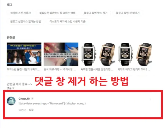 | 티스토리 블로그 관련글 박스 제거하는 방법 북클럽 기준 (70) | 2024.07.01 |