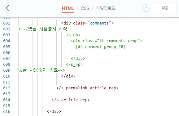 티스토리 댓글 창 제거 하는 방법