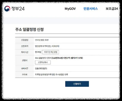 이름과 주민등록번호를 입력한 후 공인인증서나 휴대전화, I-PIN 등으로 본인 확인 절차를 거치면 바뀐 집 주소뿐만이 아니라 회사 주소까지 모두 변경 신청할 수 있으며 또 주소를 변경하는 날짜를 선택할 수 있어서 이사 가기 3~4일 전에 미리 신청할 수도 있어서 좋습니다. 또한 주소 변경 신청이 끝나면 이메일로 주소 변경 신청 내역을 전송해 주고, 변경된 후에는 변경된 결과도 통보해 줍니다.