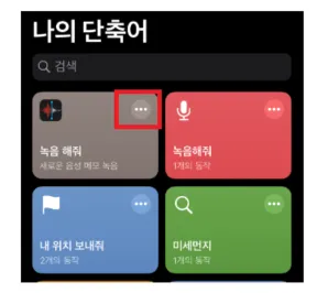 1. 단축어앱에 들어가서 우리가 생성한 녹음 파일에 있는 점세개 표시를 누른다.