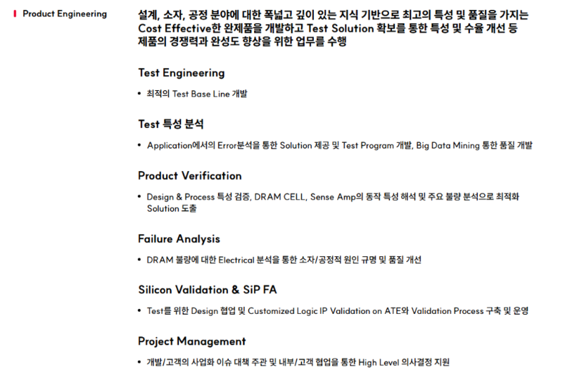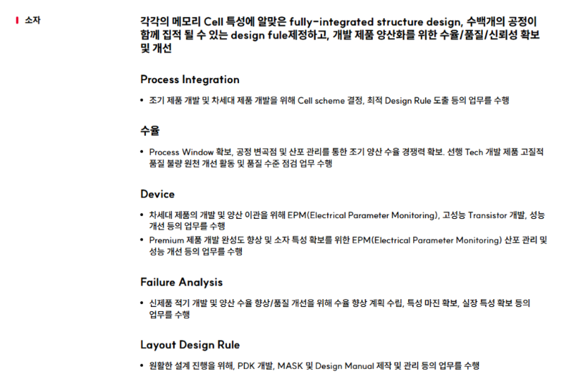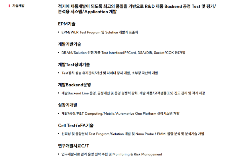 소자,어플리케이션 엔지니어링,프로덕트 엔지니어링,품질보증,기반기술,양산기술(P&T),회로설계,디지털 설계,기술개발