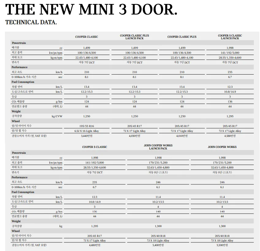 뉴 미니 쿠퍼 S 3-도어는 디자인과 성능, 디지털 경험에서 모두 혁신을 이룬 모델로, 특히 화려한 싱글을 즐기는 1인 가구가 늘어나고 있는 시대 변화 속에서 혼자 타는 운전자에게 당당한 매력을 더해 줄 선택이 될 것입니다. 차량 가격은 4810만원으로 책정되었습니다. 이번 모델은 미니 고유의 매력을 유지하면서도, 현대적인 편의성과 주행 성능을 그리고 감성을 흔드는 아름다운 디자인 까지 모두 갖춘 최고의 프리미엄 소형차로 자리잡았다고 생각합니다.