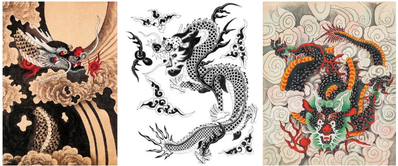 동양에서의 흑색은 북방과 물을 상징하는 색이므로 동양권 문화의 흑룡은 북쪽 방위를 지키는 용이며 물을 상징하는 용이기도 합니다. 사신 중 북방을 지키고 물을 다스리는 현무(玄武)가 검은색인 것도 같은 이유입니다. 어룡과 더불어 기우제의 대상이 되기도 합니다
