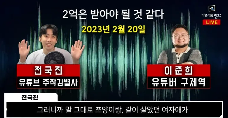 이것도 마치 한편의 영화 같습니다. 작년 3월 이근대위의 여권법 위방을 방청하러 온 구제역이 이근의 언론 인터뷰 현장에서 논쟁을 벌이는 과정에서 이근이 구제역의 핸드폰을 파손시켰고 이걸 구제역이 사설 핸드폰 수리 업체에 수리를 맡겼는데 이때 유출된 통화 녹취 내용들이 익명의 제보자를 통해 가세연으로 제보 되면서 세상에 알려지게 되었습니다.