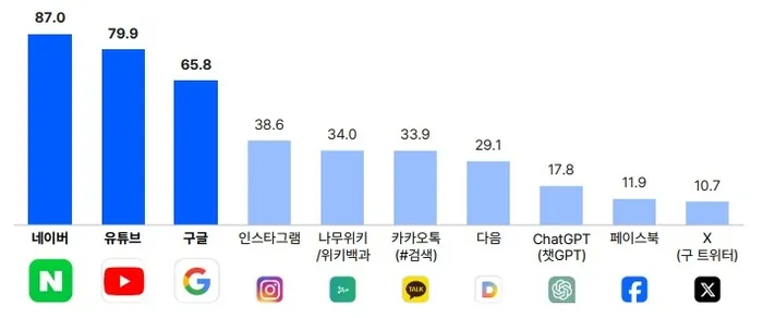 네이버는 월간 검색 이용자 4천만 명이라는 경이적인 수치로 절대적 1위 자리를 유지하고 있는 상황입니다. 5천만 국민 중 거의 대부분 검색 이용자들이 네이버 검색을 사용한다고 볼 수 있는 대목입니다. 하지만 티스토리가 이런 네이버 검색 유입을 기대할 수 없는 가장 큰 이유는 네이버가 워낙 외부 블로그에 폐쇄적이다 보니 네이버 자체 블로그 아닌 이상 검색 상단 노출은 거의 불가능하기 때문입니다.