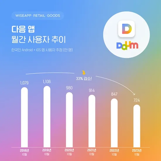 왜 티스토리 하시는 분들이 매년 수익이 줄어든다고 이야기하는지 곰곰이 생각해 보시면 다음 검색 노출과 검색 유입을 보장받을 수 있는 다음 자체의 이용자수가 매년 10~15프로씩 급감하면서 사라져 가고 있다는 사실과 매우 밀접한 관계가 있다는 겁니다.. 작년보다는 올해 올해보다는 내년 수익이 더 줄어들 수밖에 없는 사업구조가 되고 있는 티스토리입니다.