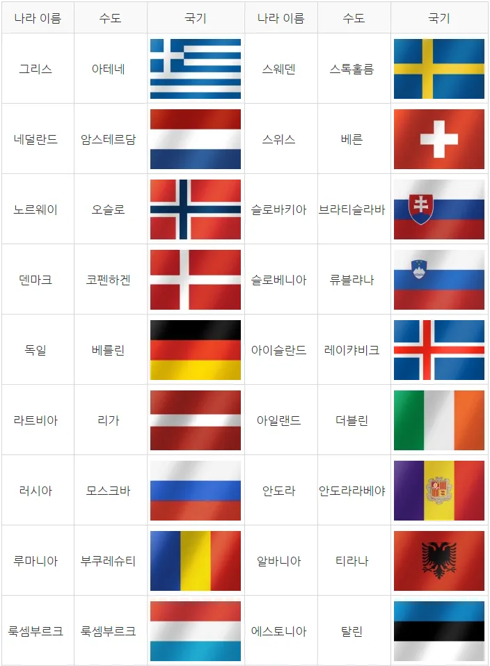 3. 유럽 각국 깃발과 수도