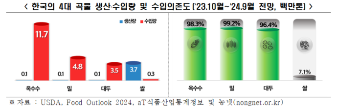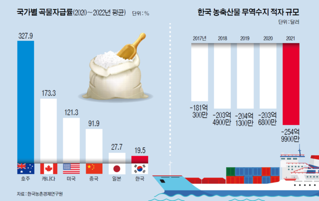 연간 국내 곡물 수요량 2300만t 가운데 1800만t을 수입하는 세계 7대 식량 수입국