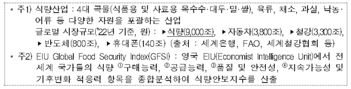 [식량안보] EIU 식량안보지수 종합순위, 韓 113개국 중 39위 vs 日 6위·中 25위