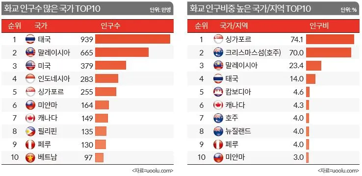 4. 세계 각국의 중국계 인구 및 비율 (2024년 최신 통계)
